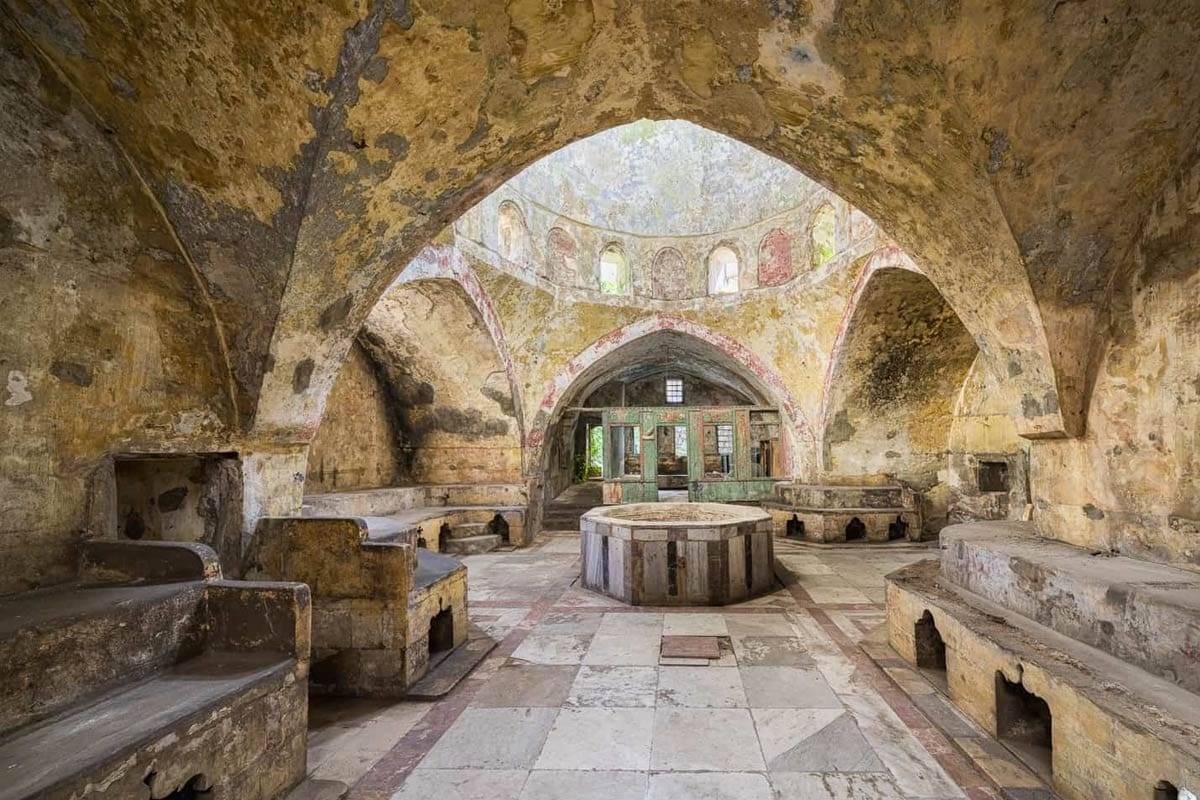 Hammamy w świecie islamu były często fundowane przez władców i bogato zdobione. Na zdjęciu po prawej stronie widać charakterystyczne półkoliste sklepienie z otworami do odprowadzania pary wodnej. Od lewej: Hammam Al-Nouri, Liban; Sultan Amir Ahmad Hammam, Kashan, Iran; Cagaloglu Hammam, Stambuł.